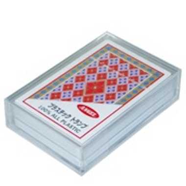 一般的なプラスチック製トランプです。丈夫で長持ち、汚れも拭き取りやすいです。