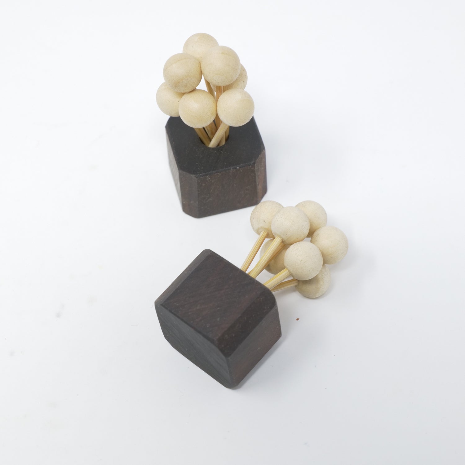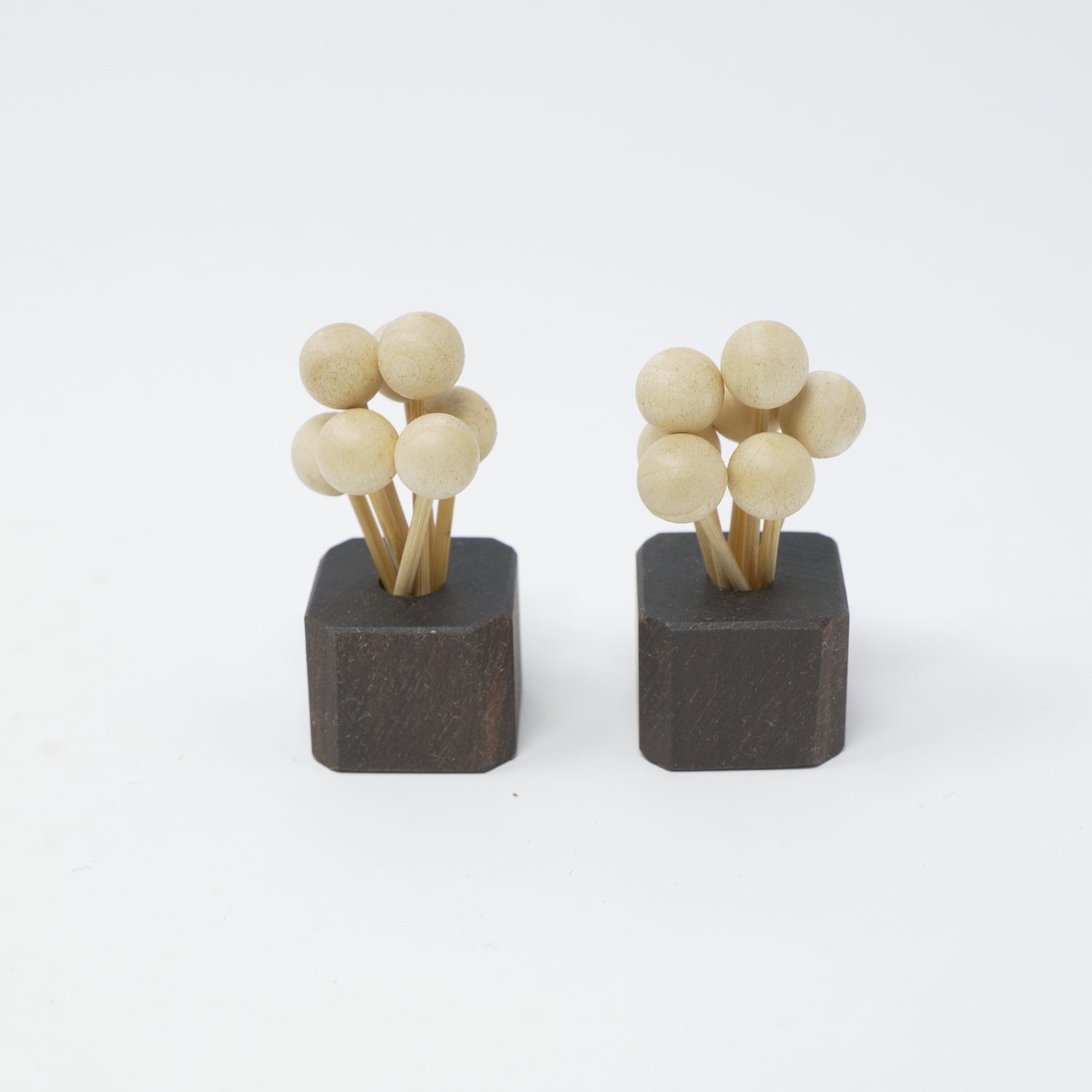 こちらのひな一段セットは2025年発売の限定モデルです。木が本来持つ色をそのまま生かしています。人形本体はコクタン・ヒバ・カリン、ぼんぼりはカリン・カラ松・コクタン、花はミヅキ・竹・カリン、ひな台はウォルナットが使われています。