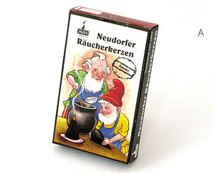 木のおもちゃでもよく知られているエルツ地方にあるノイドルフという村でこのお香は作られています。1930年創業のHUSS社は昔ながらの製法にこだわり続けています。材料は木炭、澱粉、天然樹脂などで、現在では貴重なお香だということです。たくさんの種類のお香がありますが、当店では5種をご紹介します。