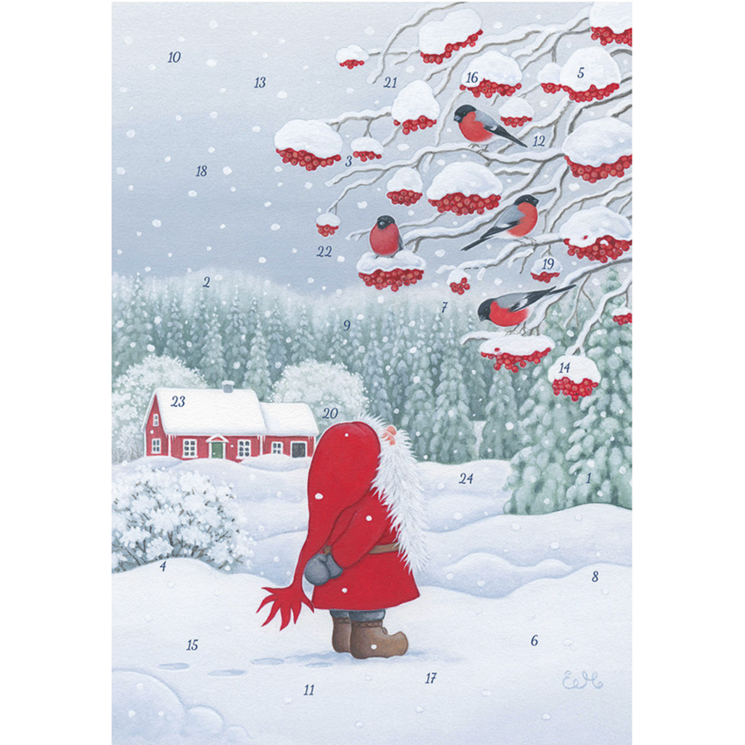 こちらの「トムテとうそどり」は壁掛けタイプの可愛らしい絵柄のアドベントカレンダーです。