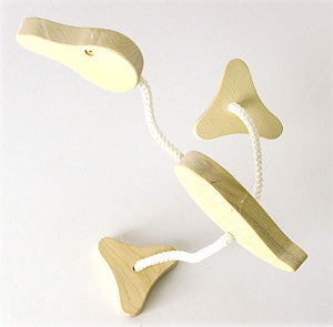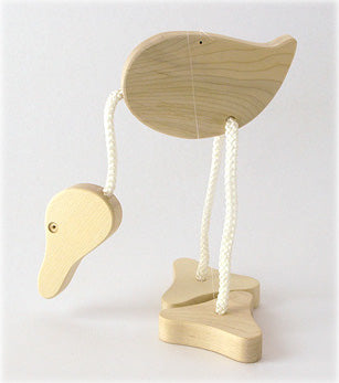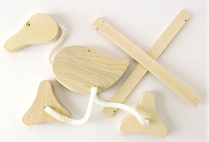 このあひるは子どもでも操作できるように、十字のハンドルに糸が4本ついただけなので、片手で簡単に動かすことができ、しかもちょっと練習するだけでまるで生きているように表現できます。