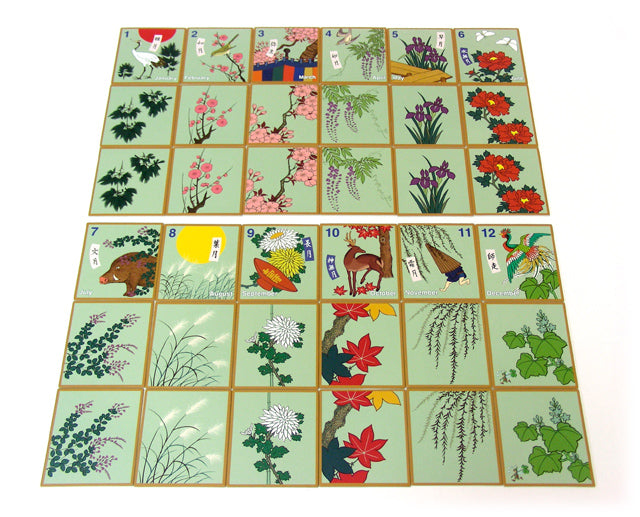 1月から12月まで各3枚で、同じ絵柄と違う絵柄2枚で遊ぶ方法と3枚を揃えるやり方があります。