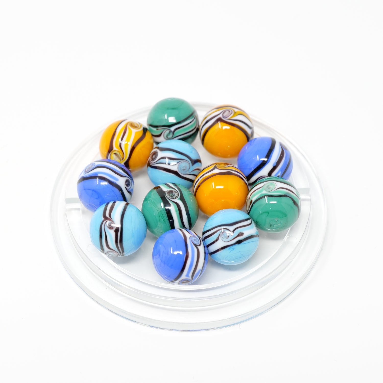 ※ ビー玉は同じ種類のものでも個々に違っているため、例としていくつか並べて写真を掲載しています。ご参考になさってください。